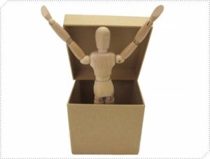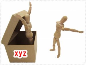 茶色の箱で、中には人形が入っていますね。